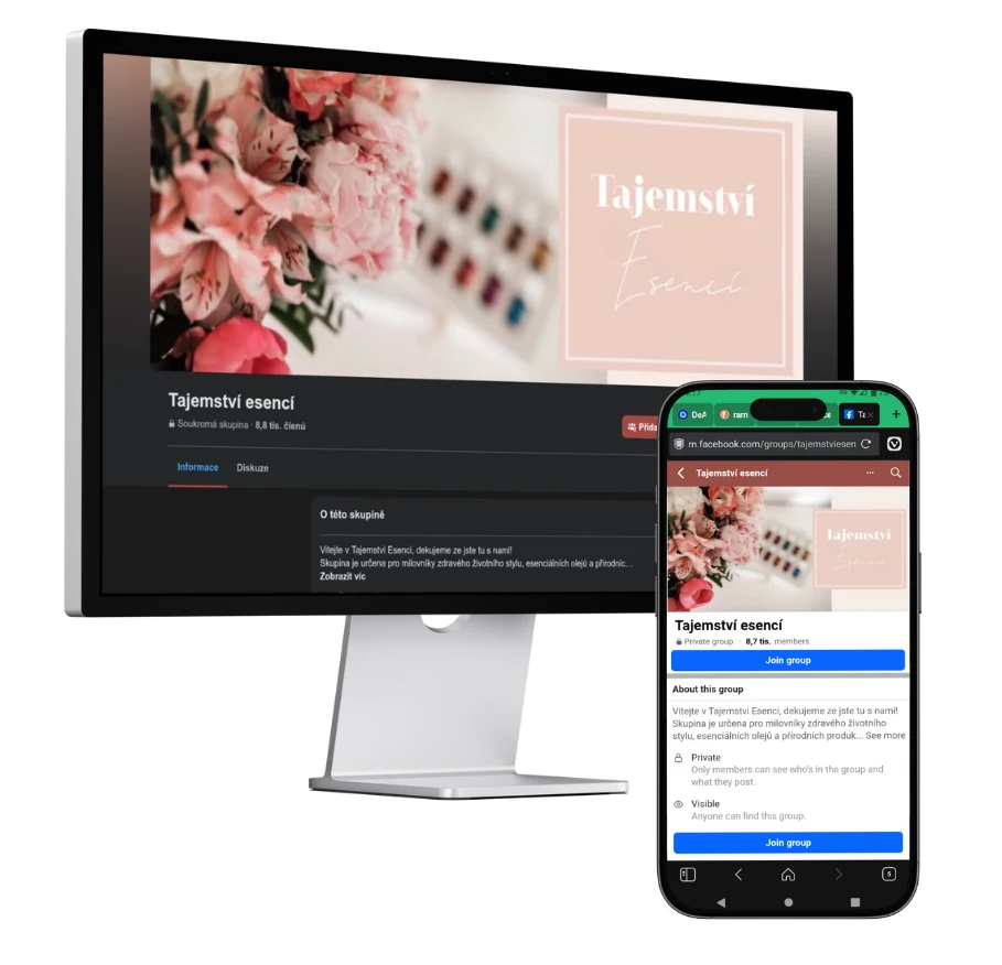 Nejsi na to sama! Připojím tě do naší facebook skupiny, kde najdeš spoustu receptů a tipů, jak postupně začít s používáním esenciálních olejů a jak je zařadit do denní rutiny. Naučíš se tu hodně věcí a také se můžeš propojit s ostatními, kteří milují esenciální oleje a zdravý životní styl.
